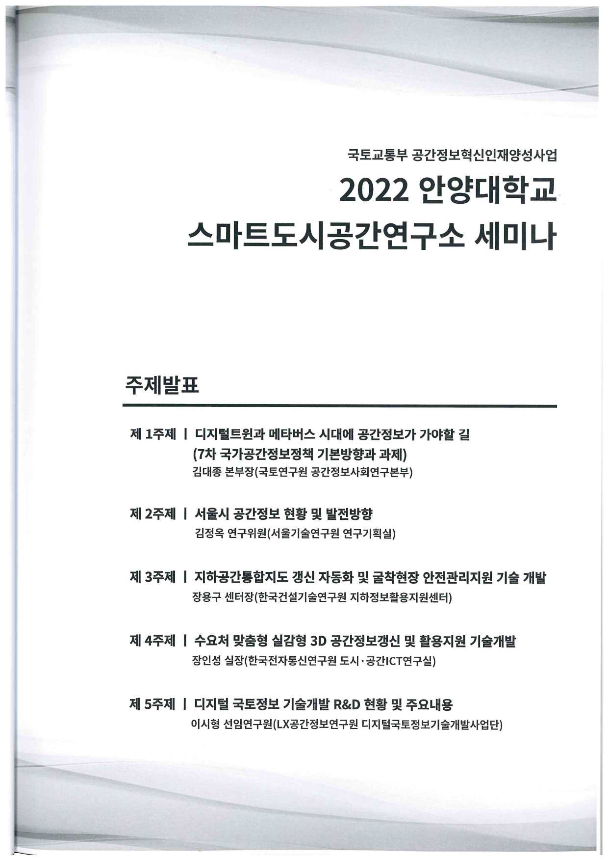 [정기세미나] 2022년 (제15호) 페이지 정보 작성자 스마트도시공간연구소 작성일 23-05-31 13:24 조회 700회 본문 이전글[정기세미나] 2022년 (제15호) 다음글[정기세미나] 2021년 (제14호) 목록